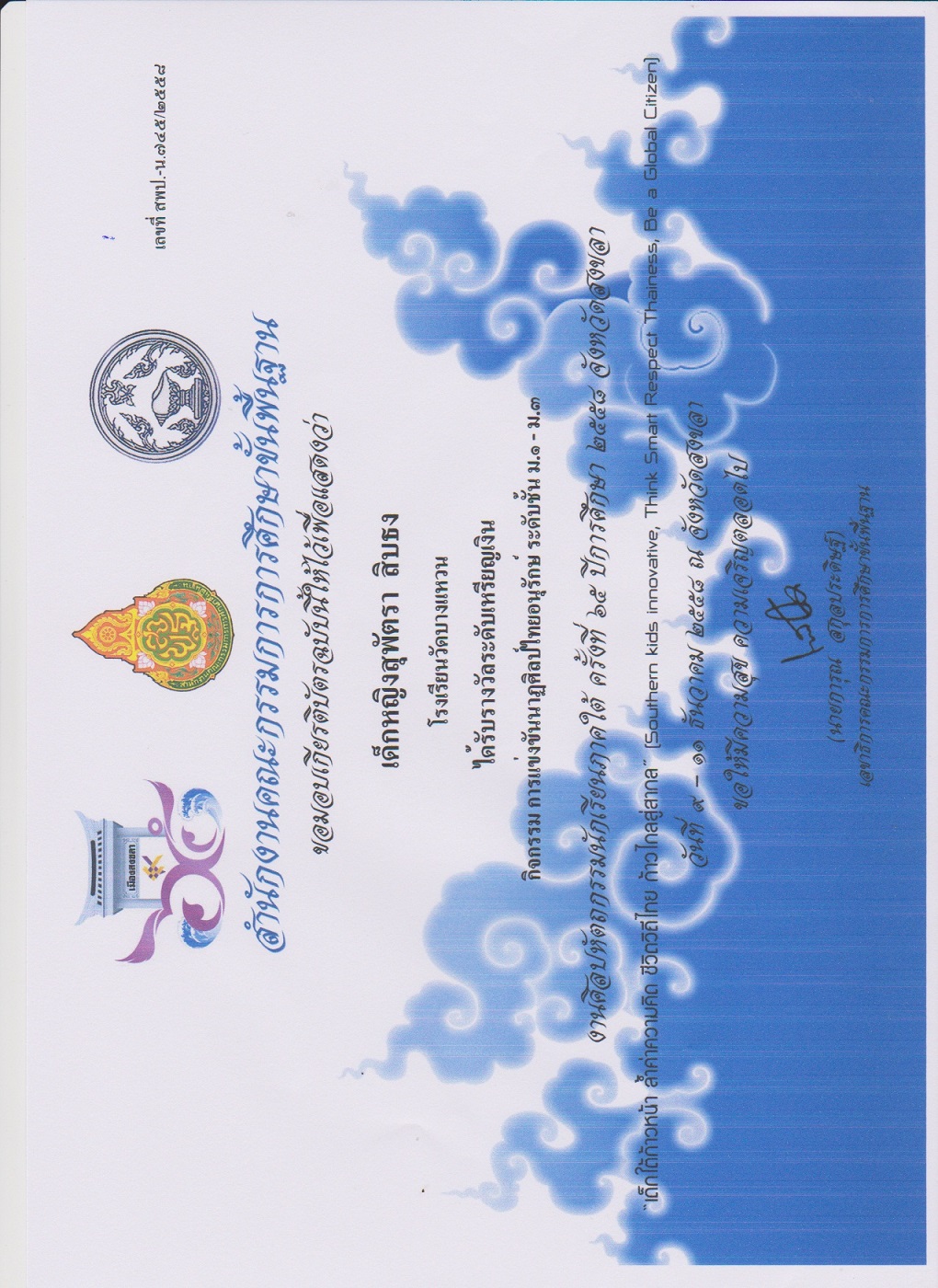 ได้รับรางวัลเหรียญเงินนาฏศิลป์ไทยอนุรักษ์ ในการแข่งขันศิลปหัตถกรรมนักเรียนระดับภาค ณ มหาวิทยาลัยราชภัฏสงขลา จังหวัดสงขลา