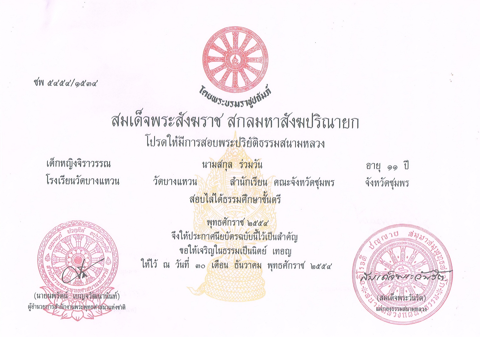 สอบไล่ได้ธรรมศึกษาชั้นตรี