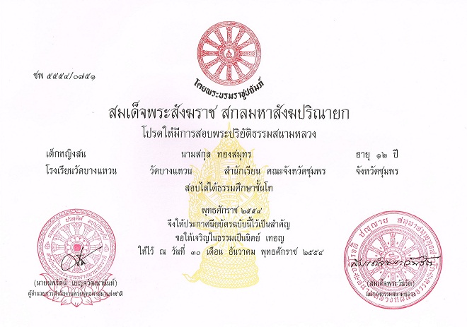 สอบไล่ได้ธรรมศึกษาชั้นโท