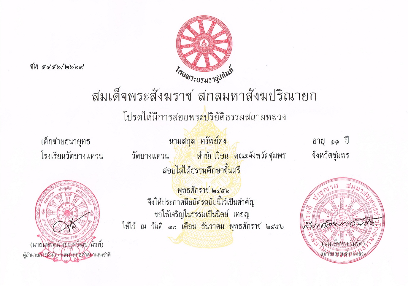 สอบไล่ได้ธรรมศึกษาชั้นตรี