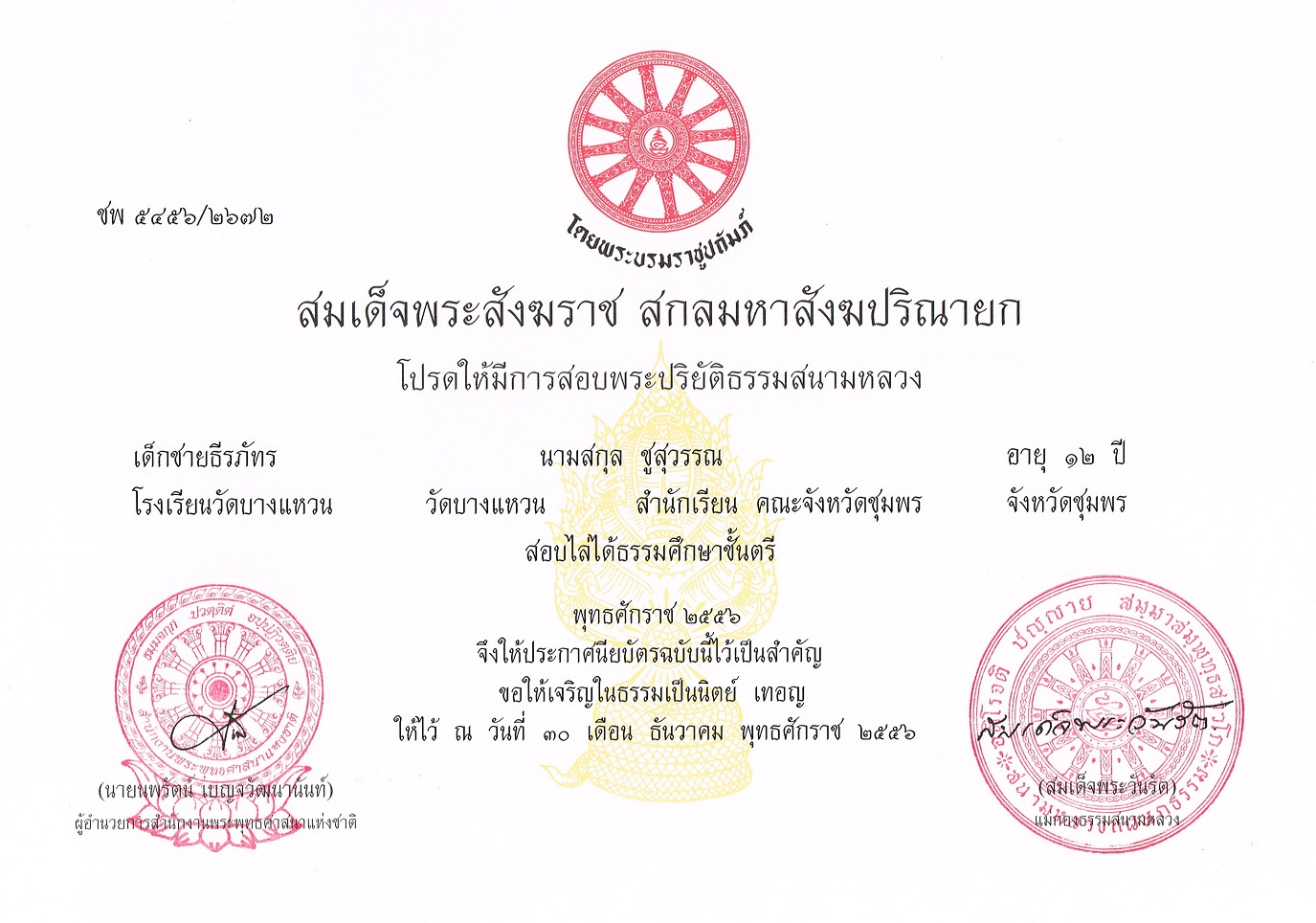 สอบไล่ได้ธรรมศึกษาชั้นตรี