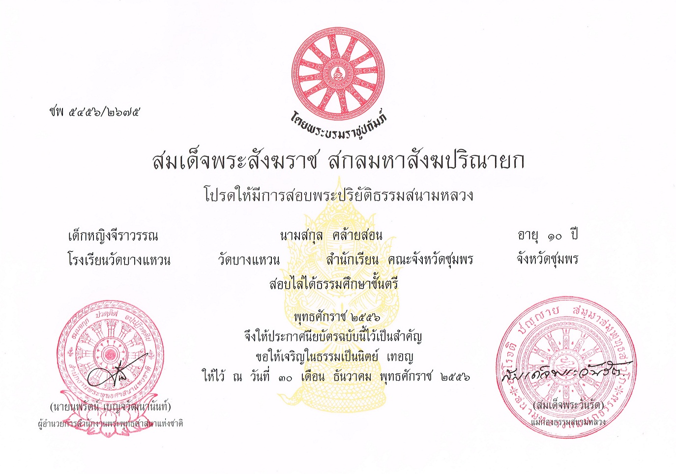สอบไล่ได้ธรรมศึกษาชั้นตรี
