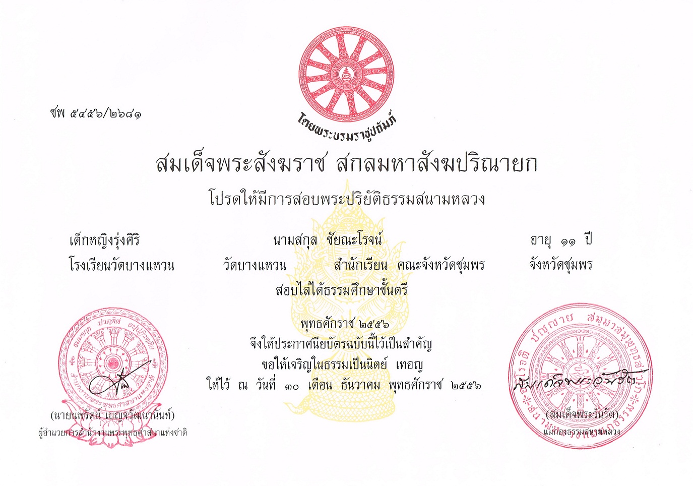 สอบไล่ได้ธรรมศึกษาชั้นตรี