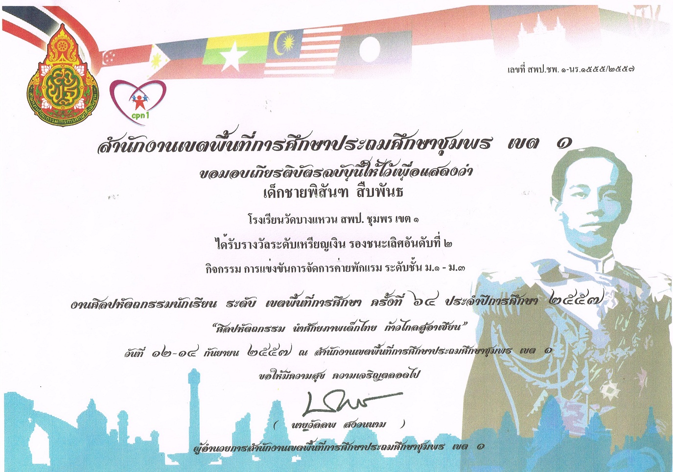 เหรียญเงินรองชนะเลิศอันดับ 2 จัดค่ายพักแรม1-3