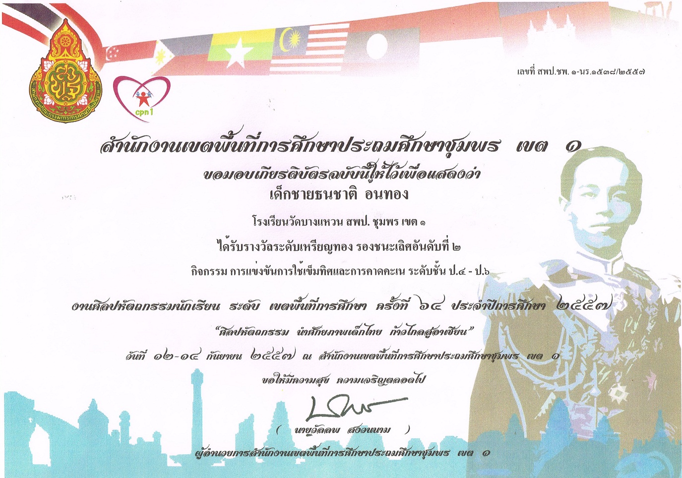 เหรียญทองรองอันดับ 2 การใช้เข็มทิศ ป.4-6