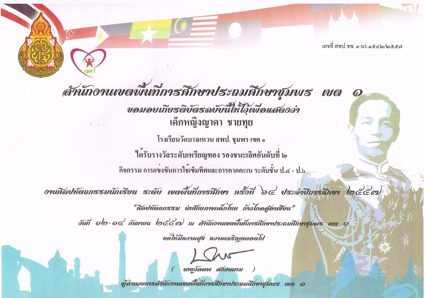 เหรียญทองรองอันดับ 2 การใช้เข็มทิศ ป.4-6